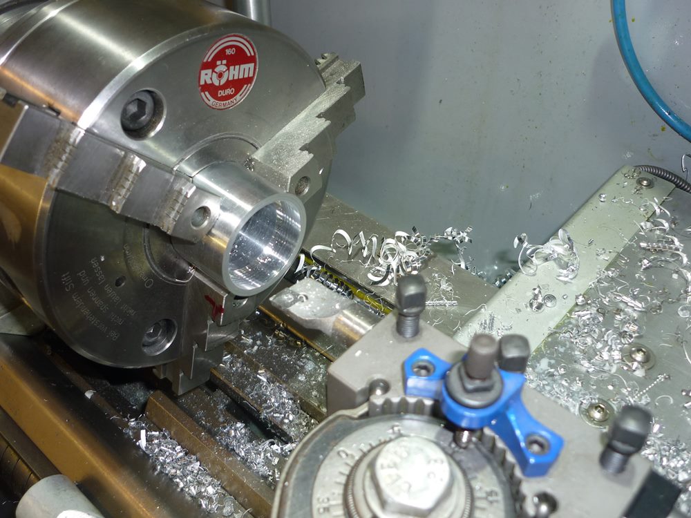 Hatte ich neulich noch schnell den Kettenschutz montiert, qualte mich doch das schlechte Gewissen ein wenig, weil ich auf eine Buchse verzichtet habe. Also fertige ich eine passende auf der Drehmaschine an. Nun ist der Schutz wenigstens fachgerecht angebracht.