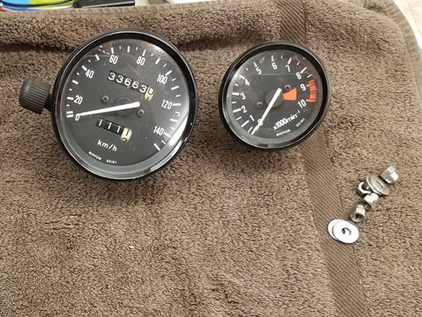 Leider hat der Drehzahlmesser oben an der Kante eine kleine Beule. Sonst sehen die Instrumente noch recht gut aus. So mag ich sie aber nicht wieder anbauen. Die Beule sieht man sofort und würde mich immer stören. Also schleife ich den Lack an und mische einen kleinen Klecks 2K Spachtelmasse an. Wärend der Trocknungszeit beschäftige ich mich mit einem anderen kleinen optischen Mangel.