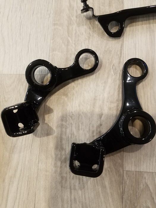 Viel Spannendes gibt es zur den Rasten ja nicht zu berichten. Ich fette die Gummis von innen leicht ein, da sie so einfacher zu montieren sind. Ausserdem schützt es vor Rost. Wie schon zuvor muss ich auch hier ein wenig die Beschichtung dünner feilen, damit die Bolzen durch die Bohrungen passen. An den Rahmen kommen die Rasten z. Z. noch nicht, da ich für die nächste Arbeit Platz benötige. Alles was noch nicht dran ist kann auch nicht in Weg sein.