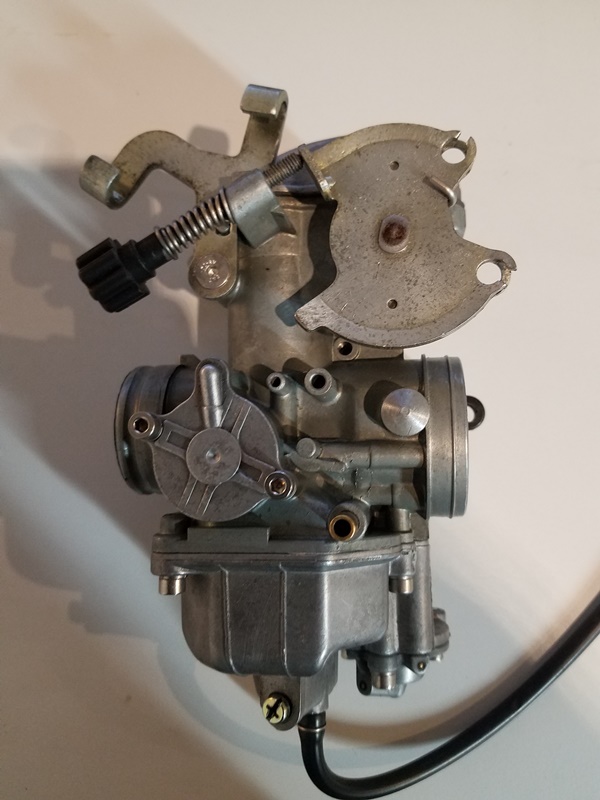 Der Vergaser wurde zerlegt, gereinigt, mit VA-Schrauben und neune Dichtungen wieder montiert. Die Membranen der "Schubabschaltung" und der Beschleunigerpumpe wurden erneuert. Ausserdem habe ich ihm einen neuen Faltenbalg an der Betätigungstange der Beschleunigerpumpe spendiert. Das Ersatzteil ist übrigens von eine Fahrradbremse. ;-)