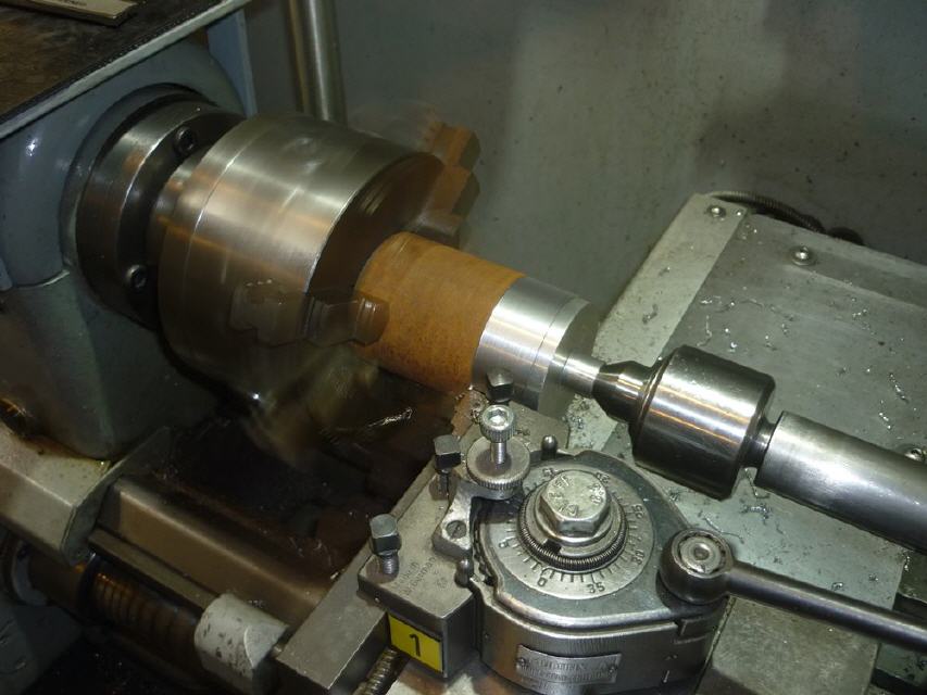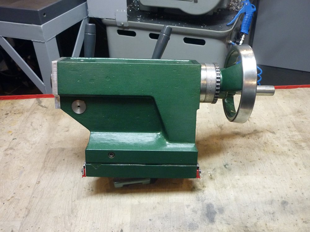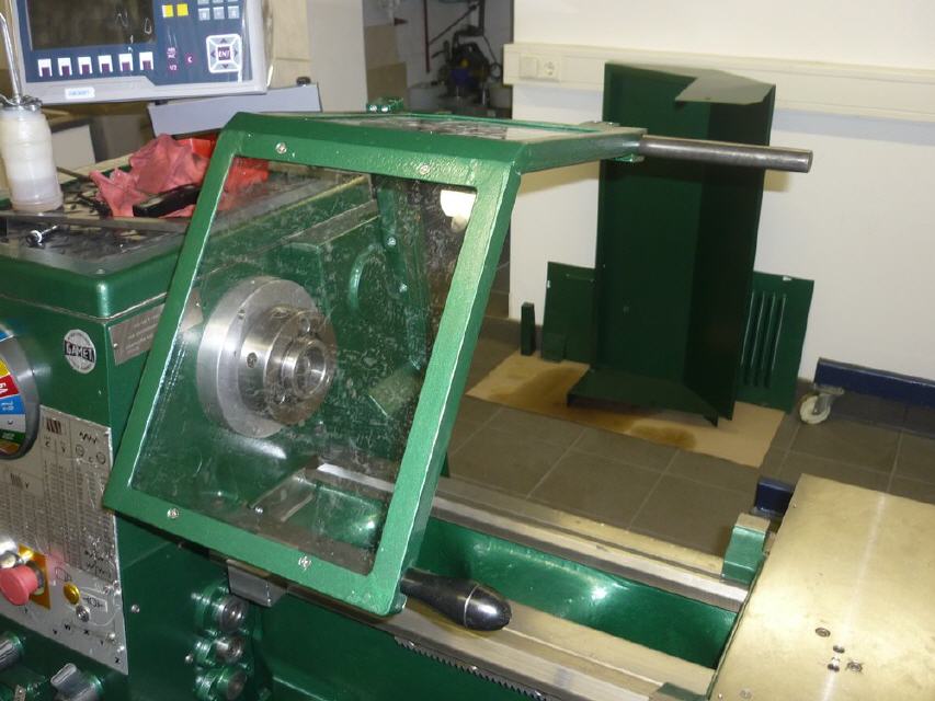 Nach dem ich nun schon von einem Leser meiner Seite "angemarnt" wurde, muss ich ja mal wieder ein bißchen in die Tasten hauen. Im letzten Akt um den Spindelkasten geht es um die aüsserlicher Vollendung. Also erstmal das Klebekrepp abmachen. Überschüssige Farbe entfernen und so. Dann werden die 2 Schalthebel, mit dem "Topf" montiert. Leider muss ich meiner "Schiene " auf der inneren Seite des Hebels um 8mm verkleinern da sie sonst mit dem Befestigungsschrauben des Topfes kollidiert. Her und da muss ich mit noch eine passende Distanzscheibe herstellen. Schlussendlich sitzt die Schaltung und funktioniert auch recht geschmeidig. Als nächstes kommt der Deckel dran. Er wiegt gefühlte 20kg. Für die Ablagefläche habe ich eine neue Gummimatte im Riffeldesign auf der Rolle bestellt. Diese gilt es passend zurecht zuschneiden. Die Mechanik zum Ausrichten des Kastens wird montiert. Alle Schilder kommen wieder dran, sowei auch die Riemenscheibe. Übrigens habe ich mit Brünierpaste bestellt und damit auch schon etwas herumexperimentiert. Z.B. an der oberen Riemenscheibe. In meiner Werkstatt ist es zwar recht trocken, aber blanker Stahl fängt dann doch irgendwann an Rost anzusetzen. Die Bremse wird auch schon mal montiert. Leider muss ich den Deckel noch etwas moditizieren, aber dazu dann wenn ich dabei komme. Nun kann der Kasten auch zurück auf die Maschine. Dazu wird er auf meinen keinen Plattenwagen verladen und in den Nebenraum gezogen. Die Montage auf dem Bett geht recht reibungslos von der Hand. In den nächsten Tagen montierte ich die Wechselräder für den Vorschubantrieb sowie die Schaltereinheit vorn am Spindelkasten. Leider bricht mir dabei der völlig ausgehärteter Kabelschlauch, den ich zuvor mühevoll gereinigt und von Sprühlack befreit habe. Also kommt ein neuer dran. Ich habe noch edlen Metallschlauch liegen. Schaut auch netter aus. Selbigen verwende ich auch für das Kabel zur Bremse. Der Hauptmotor bekommt auch wieder ein Kabel. Nun bin ich allerdings mit meinen elektrischen Fähigkeiten am Ende und der Familienelektriker muss beauftragt werden. Hoffentlich hat er Zeit für mich. Die neuen Keilriemen kann ich auch noch aufziehen und die Gewindestangen der Spannvorrchtung passend kürzen. Eigentlich könnte ich jetzt auch die Ölsteigleitung anschließen, aber hier nöchte ich einen Ölfilter zwischen bauen. Dazu brauche ich zunächst einen Halter und muss mir Gedanken um die Anschlüsse am Filtergehäuse machen. Ich hoffe der Filter bremst den Ölfluss nicht zu stark. Eine Kleinigkeit erledige ich noch nebenbei. Leider habe ich für die Maschine keinen Schlüssel für das Camlocksystem mitbekommen. Ich hatte mir zwar schon einem Schlüssel bestellt, aber er ist zu kurz um am Spindelkasten frei zu gehen. Also wird er auf der Drehmaschine in 2 Teile gestochen und mittels eines Stück Rohr verlängert. Leider ist z.Z. keine Wetter für eine Lackierung per Spraydose.