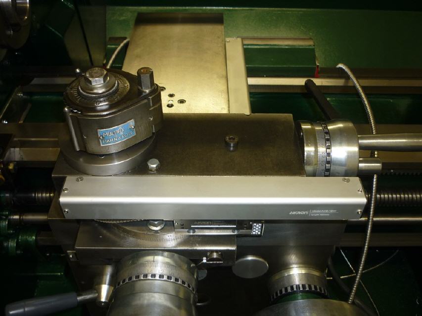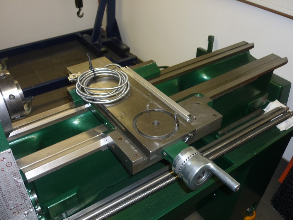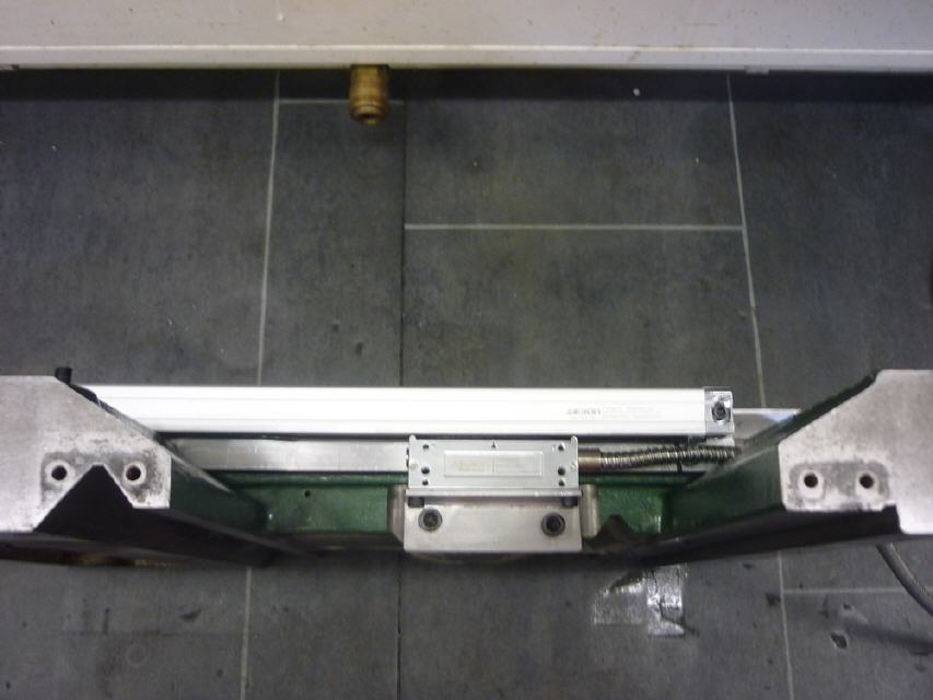 Nach dem nun die mechanische Überarbeitung abgeschlossen ist, habe ich mich in den letzten Tagen dabei gemacht das 3 Achsen Wegmesssystem (DRO) zu verbauen. Gekauft hatte ich das System schon vor längerer Zeit bei der Firma MonoTek. Die Anzeigeeinheit hatte ich ja schon vor einiger Zeit angebracht. Nun geht es an Montage der Glasmassstäbe. Beginnen tue ich mit dem Längsschlitten. Wenn man so was noch nicht allzu oft gemacht hat, tut man sich natürlich am Angang etwas schwer. Zum Glück hat die Maschine auf der Rückseite des Bettes eine bearbeitete Fläche. Hier sind auch schon diverse Bohrungen für werkseitiges Zubehöhr und sicher auch von Anzeigen die beim früheren Verkäufen wieder demontiert wurden. Leider passt keine der Bohrungen, so daß ich neue herstellen muss. Nach verschiedenen Überlegungen habe ich die Bohrungen endlich angezeichnet und gekörnt. Mittel Akkuschrauber werden 2 x M5 für den Glasmasstab und 2 x M4 für die Abdeckung gebohrt und der Massstab mittels Messuhrhalter am povisorisch aufgelegten Bettschlitten ausgerichtet. Als nächstes benötige ich eine Verbindungsplatte und 2 Distanzbuchsen. Die beigefügten Universalhalter kann ich nicht so recht verwenden. Ich säge eine Platte auf 4mm Aluminiumblech aus und bohre Löcher für 2 x M6 am Betttschlitten und 2 x M5 am Lesekopf. Am Bettschlitten kann ich 2 Gewindebohrungen verwenden. Allerdings muss ich mit zu Übertragen der leicht willkürlich gebohrten Gewindebohrungen erstmal eine Pappschablone anfertigen. Entgültig montieren kann ich die Platte aber noch nicht, da ich als nächstes die Massstäbe an Querschlitten und Oberschltten anbohren möchte. Der Bettschltten kommt wieder zurück auf die Werkbank und wird erstmal provisorisch zusammengebaut um den realen Verfahrweg festzulegen. Für den Querschlitten benötige ich einen massgeschneiderte Halteleiste. Die beigefügte Leiste ist zwar gut gemacht, aber nicht brauchbar, da an der Seite meines Querschlittens 2 prismenartige Nuten zum Klemmen eines hinteren Drehmeisselhalters vorhanden ist. Hier kann ich keine Bohrungen einbringen, da ich ins Leere bohren würde. Also kaufe ich ein Stück Aluminium Flachmaterial in 10x40x350 und "melde" mich bei meinem Kollegen Sebastian zum Fräsen der Leistenkontur und einer Fläche am Bettschlitten an. Der Bericht dazu folgt nach getaner Arbeit im Laufe dieser Woche. Da ich hier wegen besagter fehlender Leiste nicht weiter kann, beschäftige ich mich mit dem Oberschlitten. Auch dieser muss erstmal provisorisch zusammengebaut werden. Hier kann ich die begefügte Montageleiste verwenden, muss allerdings eine zusätzliche Senkbohrung einbringen, da ich sonst in die Tasche für die Schlittenklemmung bohren würde. Ausserdem muss ich am Lesekopf den Kabelausgang von rechts nach links verlegen. Wie das geht, ist sogar in der wirklich guten Anleitung beschrieben. Leider mit einem Fehler, aber noch ein wenig probieren bekomme ich es hin. Nach dem der Glasmassstab montiert und ausgerichtet ist benötige ich einen Halter für die Lesekopf. Diesen fertige ich aus 10mm Alublech an. Dazu missbrauche ich mal wieder meine Drehmaschine als Fräsmaschine. Bei Alu geht das noch ganz gut. Als Ersatz für fehlende 3 Achse benutze ich bei Fräsen einer Schulterfläche die Höhenverstellung des Multifixhalters ;-). Ich erwähnte ja bereits, daß ich mich schon sehr auf meine Fräsmaschine freue. Leider kann ich auch dem Oberschlitten noch nicht endgültig zusammenbauen, da ich hier noch eine neue Keilleiste fräsen möchte. Zu letzt fertige ich noch ein Winkelblech als Kabelführung an und körne schon mal die Bohrungen dafür am Querschlitten an.