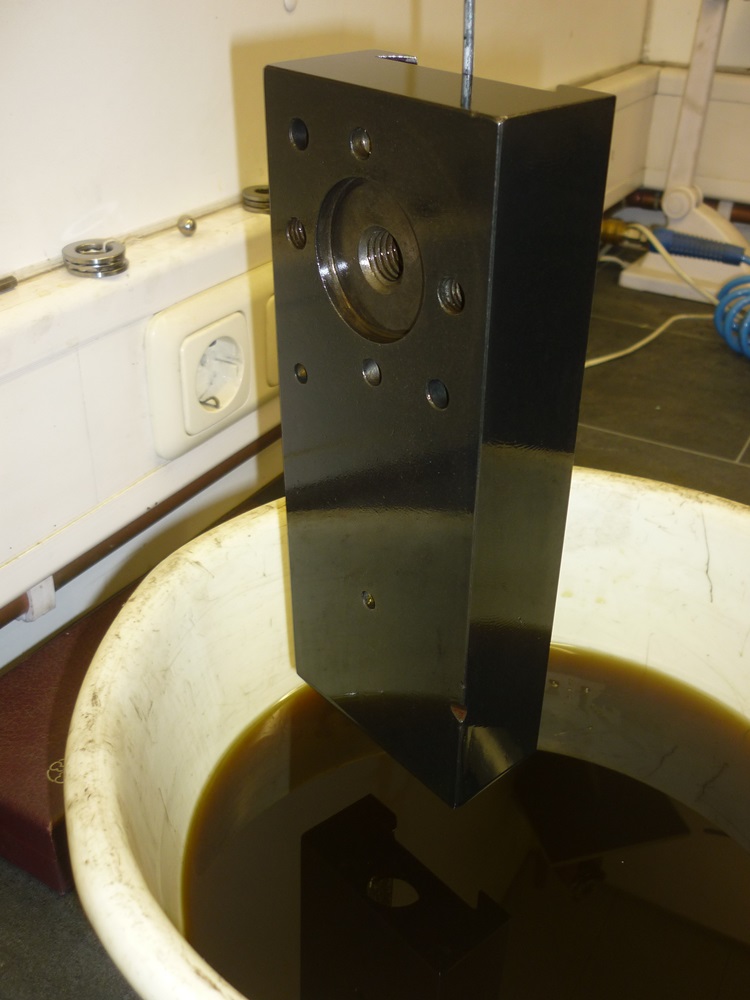 Bevor es zum eigentlichen Thema des Absatzes geht, gibt es ein Update zur Elektrik. Mein Bruder hat sich zu meinem Glück wieder etwas Zeit genommen und die Verkabelung abgeschlossen. Einzig die Ansteuerung der Spindelbremse funktioniert noch nicht, weil der Brückengleichrichter, der die 207V Gleichstrom für die Bremsspule liefern soll, sich leider als defekt erwiesen hat. Ersatz würde zwar schnell geliefert , aber auch dieser war ebenso schnell wieder durchgebrannt. Hier hatte wohl einer der Vorbesitzer es schon mit dem falschen Modell versucht und wir haben selbiges Ersatz-Modell dann auch zerstört. Ein passender ist nur aus dem Reich der Mitte bestellt. Manchmal sind es die vermeidlich einfachen Dinge, die zu Herausorderungen werden. So nun aber zum Bettschlitten. Wie erwartet, gibt es hier wirklich viel zu tun und heute auch viele Fotos. Ich beginne damit den Querschlitten abzunehmen. Aaron hatte mir ja schon offenbart, daß hier etwas mit der Keilleiste im Argen ist. Die Leiste ist am dicken Ende zu lang und am dünnen Ende zu kurz. So richtig Erklären kann ich mir das bei besten Willen nicht. Entweder gehört die Leise nicht zur Maschine, oder jemand hat eine neue Leiste an der falschen Seite gekürzt. Die Leisten werden ab Werk in Überlänge zum Anpassen an die Maschine geliefert. Vielleicht hat jemand sie pauschal dünnen Ende auf Länge gekürzt, ohne sie vorher einzupassen. Am dünnen Ende hat dann jemand ein Stück "angeflickt". Wiederrum aber auch nicht genug. Nee, also beim besten Willen. Hier bestelle ich über Fa. Wolfbeisz eine neue Leiste. Mit gut 600€ nicht günstig, aber eine neue selbst anzufertigen, wäre wohl möglich aber extrem Aufwendig. Das Oberteil des Querschlittens wird gündlich gereinigt und alle Macken egalisiert sowie diverse nicht werkseitige Gewindebohrungen verschlossen. Auf der Arbeit vermesse ich die Ebenheit der Gleitflläche. Leider ist sie in der Mitte gut 0.08mm verschlissen und dazu nach mal 0.05mm verdreht. Ein Fall für die Flachschleifmaschine. Die Trapezspindel+Mutter ist zum Glück in einem sehr guten Zustand. Zwar ist eine Stiftbohrung etwas vermurkst, aber das läßt sich wohl mit einem etwas längeren Zylinderstift ausgleichen. Die 2 Axiallager bestelle ich neu, da diese nicht mehr gut aussehen. Die Blechgehäuse der Lager werden gerichtet, geschweißt, leicht übergedreht und anschließend brüniert. Brünieren ist ja meine neue Leidenschaft. So sehen sie wieder richtig gut aus und sind etwas vor Rost geschützt. Das Lagergehäuse bekommt einen neues Anstrich. Bei der Montage fällt mit auf, daß anstelle der 7/16 Mutter eine M12 Mutter verwendet hat. Die Mutter kann man fast draufwerfen. Hier bestelle ich 2 neue Muttern. So kann ich das Lagerspiel auch besser einstellen. Als nächstes mache ich mich über die echt aufwendig konstruierte Handkurbellagerung her. Da hier einige Blindstopfen fehlten, konnte sich jede Menge Dreck und Späne im Innenraum breit machen. Die Kunststoffstopfen ersetze ich durch passend angefertigte Aluminiumstopfen. An der Maschine sind auffällig viele Teile, die man aus Stangenmaterial herstellen könnte aus Guss gemacht. Z.B. die Handräder. Leider ist hier etwas ausgebrochen. Wie auch immer das jemand nun wieder geschafft hat. Ich repariere die Stelle, in dem ich den Rest abplane. Fällt im zusammengebauten Zustand garnicht mehr wirklch auf. Alle Teile die später Kontakt mit Handflächen haben verzinke ich mit meinem Hobbygalvanikkasten. Die Gussteile bekommen eine zusätzlich Kupfergrundeirung. Das Gehäuse wird lackiert, alles wieder zusammengebaut und eingestellt. Mit dem Ergebniss bin ich bin nicht unzufrieden. Im nächsten Schritt knöpfe ich mir den Oberschlitten vor. Ich sage mal, hier hat mal jemand über lange Zeit den Schlitten mittels Futterschlüssel im Winkelpostition geklopft. Man könnte dazu natürlich auch einen Schonhammer benutzen, aber..... Die Maschine wurde wahrlich nicht gut behandelt. So was macht mich immer traurig, aber zum Glück gibt es ja Fräsmaschinen mit dem man die Spuren des Misshadlung in Späne umwendeln kann. Auch beim Oberschlitten wurde bereits an der Keilleiste herumgeschschweißt und 0.3mm Folie zwischengelegt. Naja im Größen und Ganzen ist die Leiste aber noch verwendbar. Die Spindel ist hier im Gegensatz zum Querschlitten primitiv nur in Guss gleitgelagert. Da mit ein paar recht einfachen Modifikationen ein 51102 Axiallager unterzubringen ist, baue ich es entsprechend um. Alle 3 Schlitten der Maschine lassen sich übrigens klemmen. Eine Funktion, die meine Leinen leider nur in Längsrichtung hat. Beim fertigen von Passungen oder bei unterbrochenen Schnitt, eine sehr nützliche Sache. Beim Oberschlitten hat allerdings jemand bei besagter Klemmung mal wieder eine M6 Schraube in ein 1/4" Gewinde gemurkst. Das Resultat könnt ihr in den Fotos bewundern. Final fertige ich noch Ersatz für einen fehlenden bzw. abgebrochenen Handgriff an. Dieser ist nicht drehend, sondern fest montiert. Das macht die Sache etwas einfacher. Fortsetzung folgt....