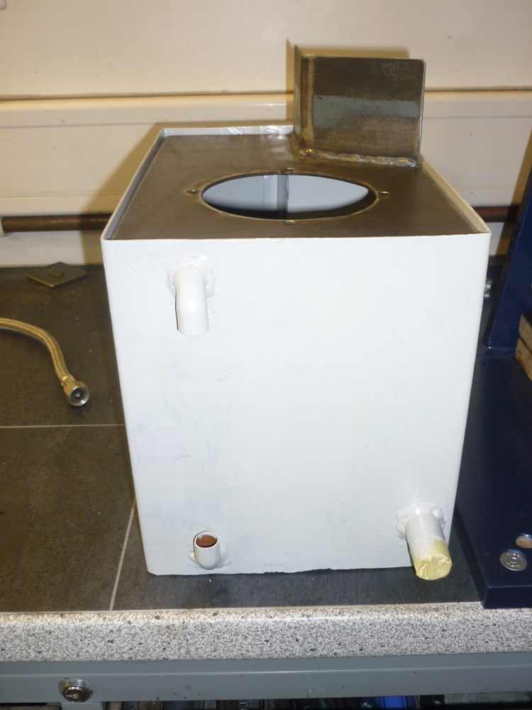 Auch wenn ich z.Z. durch einen Bandscheibenvorfall arg eingeschränkt bin, versuche ich trotzdem ein bißchen was in der Werkstatt zu machen. Ich bin "leider" nicht für die Couch geboren. In kleinen "Dosen" und mit Pausen geht es schon. Nach dem alle Teile der KSS Anlage angestrichen sind, wird diese nun zusammengebaut. Da ich das Typenschild etwas unsanft entfernen musste wird es nun mit Silikon aufgeklebt und die Kerbstifte nur zur Deko eingeschlagen. Fällt eigentlich kaum auf. Ausserdem bekommt der Pumpenmotor einen elektrische Kupplung. Vermutlich alles andere als fachkonform, aber das ist mir egal. Zu Reinigung der Anlage benötige ich einen Möglichkeit die Pumpe einfach abzuklemmen. Am Pumpenausgang wird ein Flexschlauch angeschlossen. Hier ist schon einen schöne Verschraubung an der Pumpe vorhanden. Nun zum KSS Tank. Die Füllstandsanzeige wird montiert und mit 2 Ohrschlellen gesichert. Der Tank bekommt ausserdem einen Kugelhahn um den Wasserwechsel zu erleichtern. Leider passt die Anlage nicht ganz durch den Ausschnitt in dem rechten Maschinenfuss. Hier muss ich mit der Flex ein bißchen was wegschneiden. Das war mit bei der Planung der Anlage schon bewusst. Nun war es an der Zeit mehr Platz zu schaffen. Nebenbei hat es auch noch den großen Vorteil, daß man die Anlage viel einfacher herauszeihen kann. Natürlich ist die Blechabdeckung nun entsprechend zu kurz und muss verlängert werden. In meinem Lager findet sich noch passendes Blech. Aussdem schneide ich noch einen Ausschnitt für den Kugelhahn ins Blech. Die Anlage darf schon mal an ihren Platz. Die Kupplung der Spannungsversorgung wird noch an Kabel angeschlossen. Ich habe allerdings noch die Idee, das rücklaufende Bohrwasser zu filtern. In der Spänewanne befindet sich schon ein feinmaschiges Netz. Darunter befindet sich dieser Wassersammler mit "Rutsche" zum KSS Tank. Für den Sammler fertige ich einen Einsatz an, in den ich später ein Fltervlies legen möchte. So zumindest der Plan. Soviel zunächst zum Thema KSS. Desweiteren habe ich den Schaltschrank schon mal vormontiert und mit eine Mutter an seinem Platz befestigt. Da der Schaltschrank rückseitig mit 3 Gewindestangen und Winkelstücken befestigt + ausgerichtet wird und man da ausgesprochen bescheiden schrauben kann, tut es erstmal die eine Mutter bis alle Komponenten montiert und verkabelt sind. Ich gehe mal schwer davon aus, daß der Elektriker ihn gern auf der Werkbank vormontieren möchte.