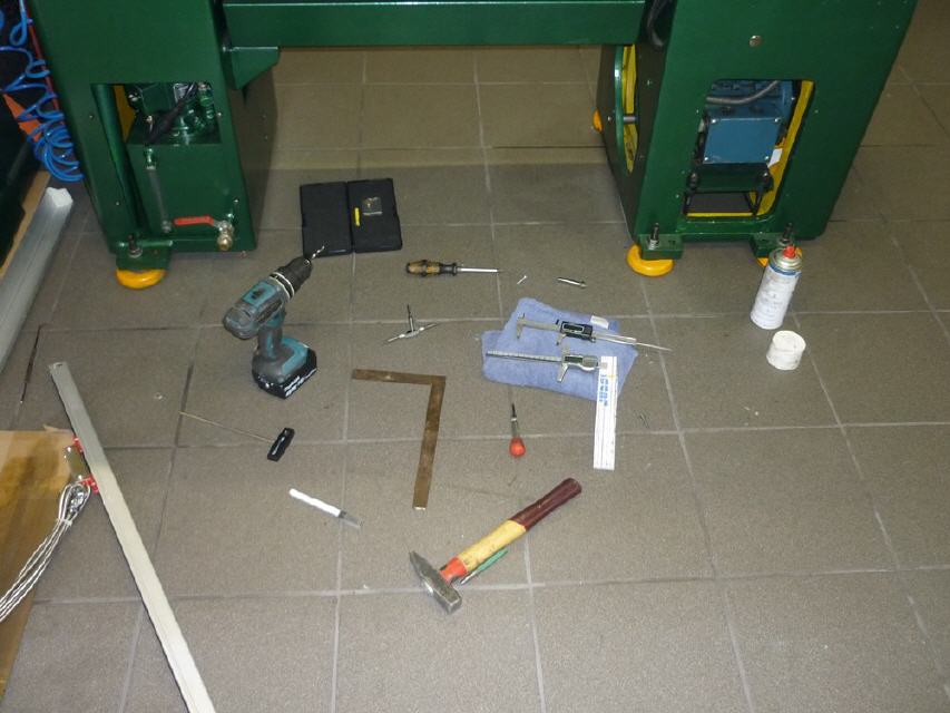 Es ist mal wieder höchste Zeit über den Fortschritt am Projekt Colchster zu berichten. Leider ist seit meinem letzten Bericht mein Schwiegervater nach langer Krankheit gestorben. Auch wenn es für alle eine Erlösung war, so ist dsie Stimmung doch getrübt und das Hobby rückt mal für eine gewisse Zeit in den Hintergrund. Nun, was soll man machen. Irgendwie geht das Leben ja weiter. Da meine Frau für ihre anstehende Selbstständigkeit ein Lager benötigt, räume ich "meine" Garage. Die Motorräder kommen in ein angemietetes Winterlager. Allerdings möchte ich die letzte Gelegenheit nutzen und so viele Teile, wie möglich noch in der Garage lackieren, da ich mich sonst in meiner Kellerwerkstatt festwühle. Zunächst müssen einige Teile noch gerichtet und nachgeschweißt werden. Dann wird geschliffen und lackiert. Da meine Frau Steffi z.Z. nicht so viel um die Ohren hat, hilft sie mir dabei hin und wieder mit. Dankeschön dafür! Alles was nach 3 Anstrichen für den Unterbau der Maschine fertig ist, wird auch gleich verbaut. Was bei den großen Blechteilen die eine oder andere Herforderung ist. Hier muss ich mit einigen Tricks arbeiten um die Bohrungen übereinande zu bekommen. Bei der Gelegenheit verlege ich auch schon das Anschlusskabel und die Leitung für die KSS Pumpe. Sieht schon wieder etwas mehr nach Drehmaschine aus.