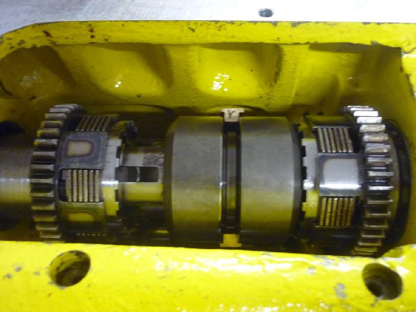 Einige Zeit ist wieder ins Land gegangen und mit der Colchester bin ich ein gutes Stück vorran gekommen. Bevor ich mich weiter dem Spndelkasten gewidnet habe, hatte ich den Vorschlag meines Freundes Georg befolgt und das Vorschubgetriebe mit Diesel gespült. 1.5 Liter fülle ich ins Getriebe und lasse es ca. 10 Minuten per Akkuschrauber im alles möglichen Schaltstufen laufen. Ob der Dreck wirklich raus ist oder nicht weiß man natürlch trotzdem nicht, aber das Diesel hat sich von Hellgelb in Goldbraun verfärbt. Ich denke die Mühe hat sich gelohnt. Das Diesel gieße ich durch ein Baumwolltuch als Filter in den abgedichteten Spindelkasten. Mit verschiedenen Pinseln und Bürsten versuche ich den Dreck am zu lösen. 3 x Lasse ich das Diesel ab und filter es wieder durch Baumwollstoff. Es wird schon einiges an Dreck mitgenommen, aber so richtig sauber ist was anders. Als ich bei genauerer Inspektion entdecke ich einen arg verschlissenen Gleitstein sowie noch 5 weitere Kugellager mit 2RS Abdichtung. Was sollen fettgefüllte Lager in einem Getriebe mit Ölumlaufschmierung. Ob das Getreibe schon mal so weit auseinander war und jemand diese Lager verbaut hat, die er gerade hatte oder ob sich die Engländer was dabei gedacht haben? So recht vorstellen kann ich mit das nicht. Also frage ich meinen Bekannten Ralf. Der hat schon diverse Werkzeugmaschinen überholt. Unter anderem auch einen Colchester Bantam. Er ist der selben Meinung, daß so lche Lager da nicht rein gehören. Also zerlege ich das Getriebe nun doch komplett. Der Innenraum wird gründlch ausgewischt, und alle Bohrungen ausgeblasen. Das sieht schon besser aus. Eine interresante Konstuktion entdecke ich bei der Schmierölversorgung des vorderen Hauptlagers. Hier wird das Öl über einen Schlau zur Gehäusewand gepumpt und fließt dann in eine Tieflochbohrung über eine lange Spiralfeder in das Alugehäuse der Spindelnase. Von dort über das Lager zrück ins Gehäuse. Was die Feder für eine Aufgabe hat leuchtet mir nicht ein, sie ist aber voller Dreck und Fasern. Vielleicht ist filtern ihne Aufgabe. Der eine Gleitstein muss mal furchtbar heiß geworden sein, da der gelbe Lack am Schaltarm braun verfärbt ist. Ich fertige aus Bronze 2 neue an. Da ich an diesem Wochenende viel Zeit habe und nicht auf neue Lager warten mochte kaufe ich welche bei einem Händler in Neumünster. Ein wirkliches Männerparadies und super freundliche, kompetente Mitarbeiter. Da gibt man gern ein paar Euro mehr aus. Die Wellen und Zahnräder werden gereinig und untersucht. Man kann einigen Zahnrädern ihr Alter zwar ansehen, aber im Großen und Ganzen sind sie noch o.k. Ich muss diverse Spuren der Grobschmiedreparatur egalisieren und scharfe Kanten an Wellen und Zahnrädern entfernen. Es wurden sogar Metrische Schrauben mit Gewalt in die Zollgewinde geprügelt. Wo möglich tausche ich auch O-Ringe. 2 Seegerringe fehlen auch. Doch, ich bin schon froh, daß ich alle Wellen rausgenommen habe. Es folgt die Remontage. Bei einigen Wellen ist das ein arges Gefummel, da man die Wellen erst im Gehäuse mit ihren Zahnrädern, Buchsen und Lagern bestücken muss bzw. kann. Besondern bei den Lager in den Zwischenwänden alles andere als einfach. Ich muss mir "Anschläge" aus Flacheisen anfertigen und diese mit Zwingen befestigen um die Lager auf die Sitze zu klopfen. Diverse Seegerringe machen mir das Leben ebenso schwer. Nach gut 10 Stunden und diversen kleinen Wunden an den Händen, ist der Kasten wieder vollständig bestückt. Achja, da ich keine neuen Flachdichtungen besitze, fertige ich mir diese auch selber mit Schere, Zirkel und Locheisen aus Dichtungspapier an. Zusätzlich bekommen die Dichtungen eine dünne Schicht Dirko HT aus der Profipress. Von dieser Dichtungsmass in der Druckkartusche bin ich ist jetzt echt begeistert. Sie scheint im Druckbehälter nicht auszutrocknen. Ich habe die so die Erfahrung gemacht, daß die Papierdichtungen so weniger am Metall verkleben. Das Lagerspiel und die Kupplungen muss ich natürlich noch einstellen, aber das mache ich nach den ersten Probeläufen. Als nöchstes folgt dann die Lackierung.